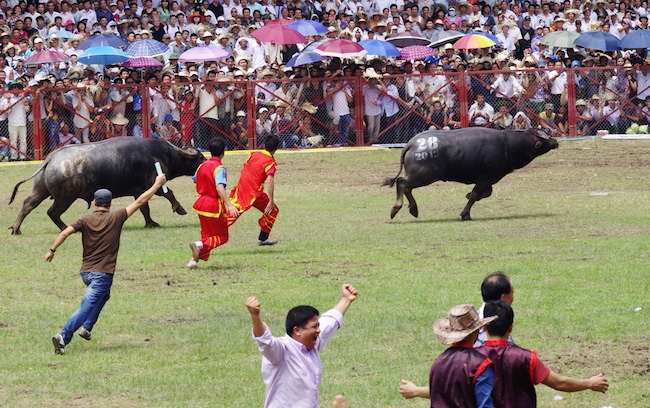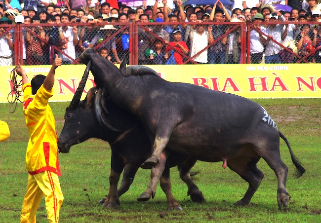 Điều đáng chú ý là các trâu xuất phát từ phía cửa bắc tỏ ra khá may mắn khi thường chỉ mất chưa đầy 1 phút là đối thủ đã bỏ chạy