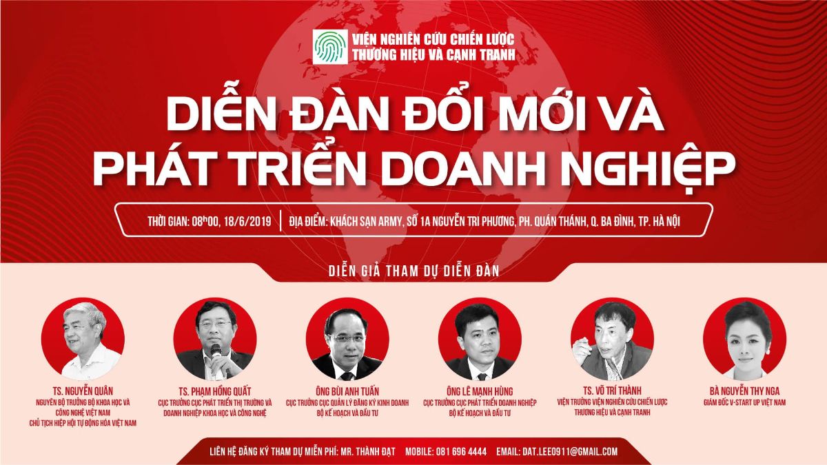 Ngày 18/06/2019, Viện Nghiên cứu Chiến lược Thương hiệu và Cạnh tranh (đơn vị trực thuộc VSATH) sẽ tổ chức Diễn đàn Đổi mới và phát triển doanh nghiệp.