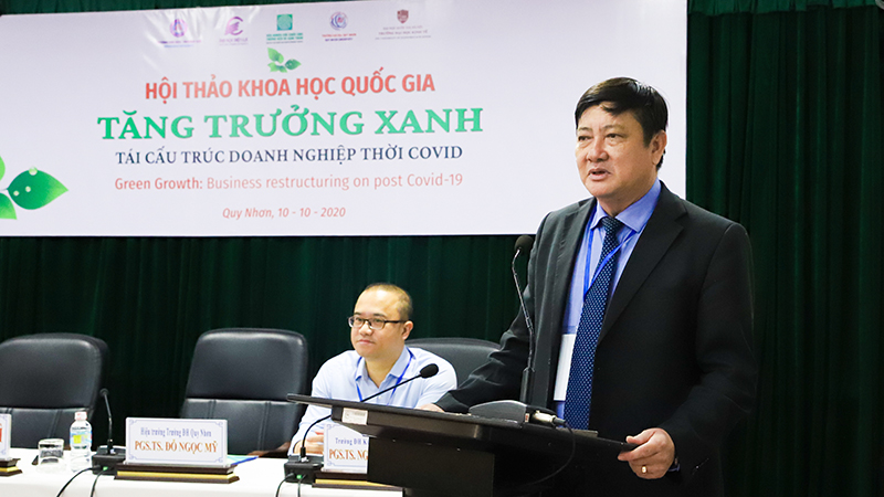 Sáng ngày 10/10/2020, Trường Đại học Quy Nhơn phối hợp cùng với Trường Đại học Kinh tế - Đại học quốc gia Hà Nội, Trường Đại học Điện Lực, Trường Đại học Thương mại, Viện Nghiên cứu Chiến lược Thương hiệu và Cạnh tranh tiến hành tổ chức Hội thảo khoa học quốc gia: “Tăng trưởng xanh – Tái cấu trúc doanh nghiệp thời Covid” nhằm tạo diễn đàn liên kết giữa các trường đại học, viện nghiên cứu với cộng đồng các doanh nghiệp để cùng trao đổi kinh nghiệm, thực tiễn về quản trị trong các doanh nghiệp Việt Nam nhằm hướng tới sự phát triển bền vững của các doanh nghiệp trong bối cảnh biến đổi khí hậu và khủng hoảng dịch bệnh toàn cầu.