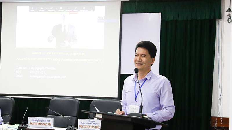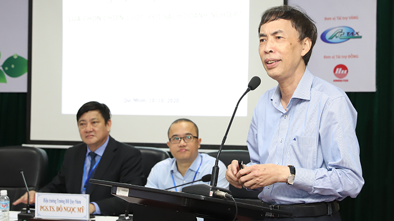 Phát biểu đề dẫn tại Phiên tư thảo luận chuyên môn, PGS.TS. Nguyễn Đình Hiền – Phó Hiệu trưởng Trường Đại học Quy Nhơn đại diện Ban Tổ chức đã nhấn mạnh: Năm 2020, dịch Covid-19 đã tác động sâu sắc đến nền kinh tế thế giới, làm thay đổi cả xu hướng sản xuất, xu hướng tiêu dùng của các quốc gia. Với Việt Nam, bài toán quản trị doanh nghiệp, bài toán tái cấu trúc doanh nghiệp tái cấu trúc sản xuất đang đặt ra cấp thiết để phù hợp với xu hướng của thế giới, xu thế phát triển doanh nghiệp. Mặc dù dịch Covid-19 ở Việt Nam đã được khống chế, sản xuất dần trở lại ổn định với trạng thái “bình thường mới”, song nhiều doanh nghiệp gặp rất nhiều khó khăn. Và trong bối cảnh nền kinh tế Việt Nam đang dần thích nghi với trạng thái ‘bình thường mới’, lãnh đạo các doanh nghiệp phải tiếp tục cân bằng chiến lược cắt giảm chi phí mà không gây ảnh hưởng tới doanh nghiệp, đồng thời chuyển hướng đầu tư cho các yếu tố giúp tăng trưởng. Để chuẩn bị cho những khủng hoảng trong tương lai, đây chính là thời điểm thích hợp để doanh nghiệp thực hiện các biện pháp tái cấu trúc & tìm kiếm sự khác biệt trong chuỗi giá trị.