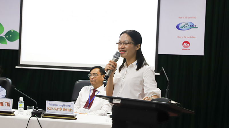 ThS. Lê Thị Mỹ Tú – Trường Đại học Quy Nhơn trình bày báo cáo tham luận tại Hội thảo.